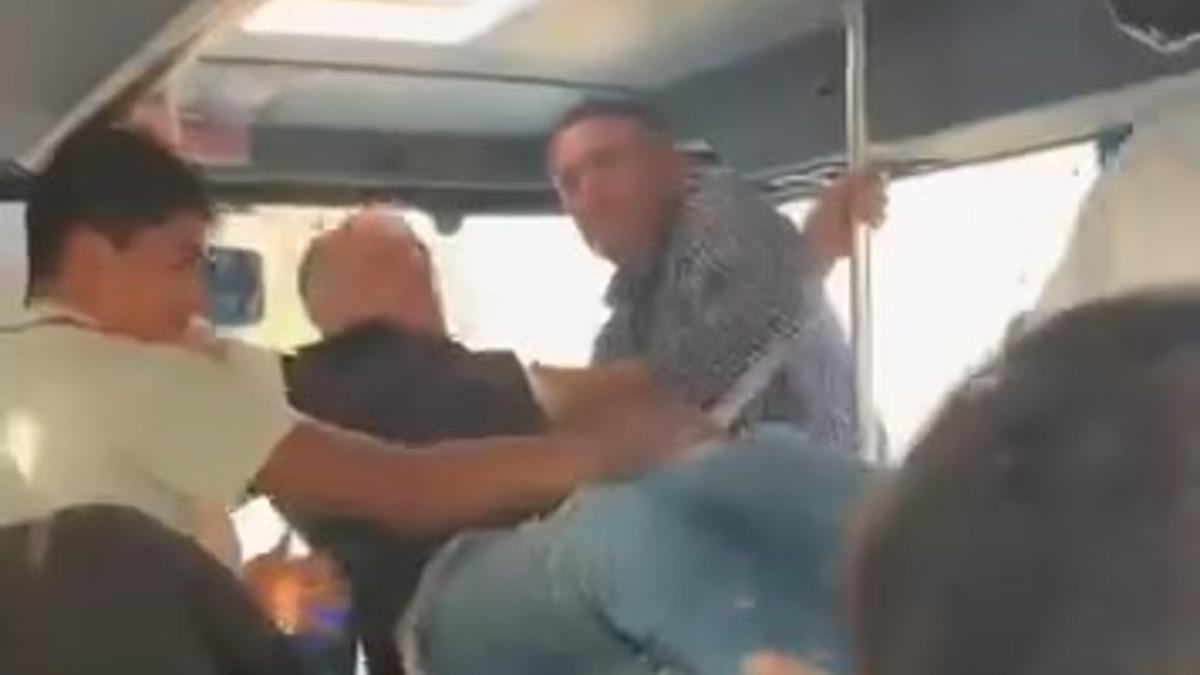 Elazığ’da halk otobüsünde şoför ile bir yolcunun tekme tokatlı kavgası cep telefonu kamerasına yansıdı.