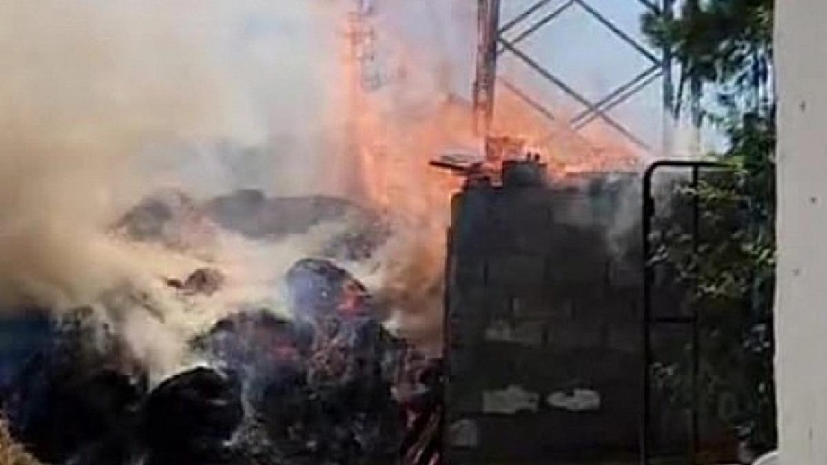 Malatya’nın Battalgazi ilçesinde elektrik direğinden kopan kablo, bir odunluğun üzerine düşerek yangına neden oldu.