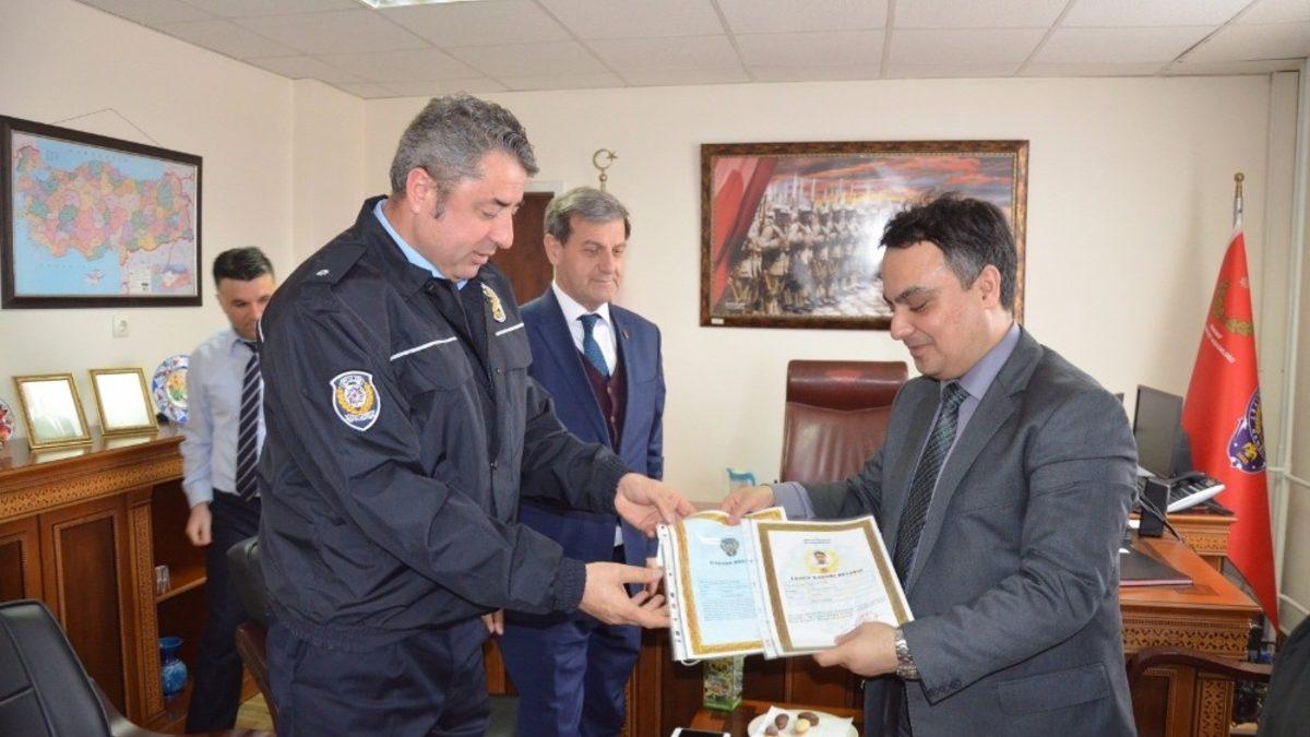 Kaymakam Halim, görevinde üstün gayret gösteren Emniyet Müdürü ve personeline başarılarının devamını diledi. (MEİ-EFE)