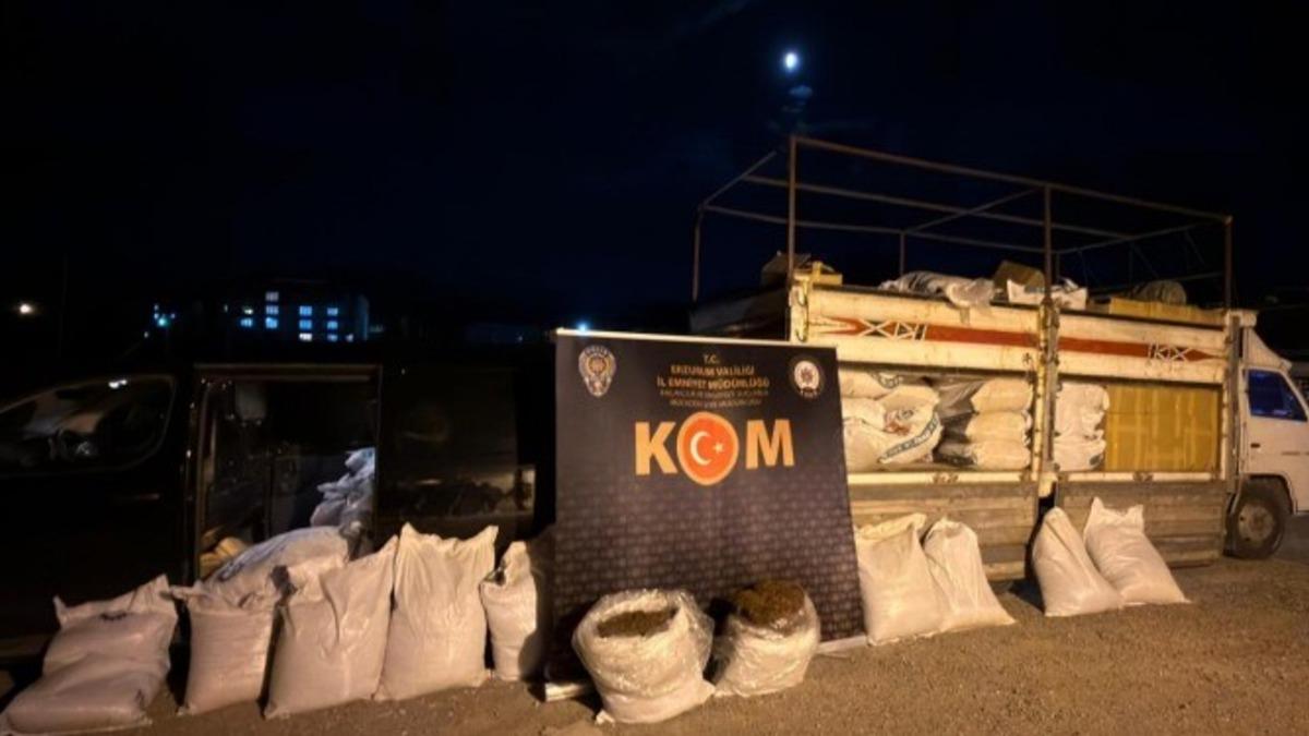 Erzurum Emniyet Müdürlüğü Kaçakçılık ve Organize Suçlarla Mücadele Şube Müdürlüğü ekiplerince 5607 sayılı Kaçakçılıkla Mücadele Kanunu kapsamında Yakutiye İlçesinde 1 kamyon ve 1 panelvan araçta yapılan aramada; 3 ton 880 kilogram açık kıyılmış tütün ele geçirildi.