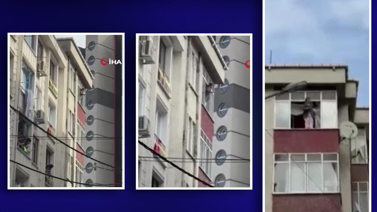 Deprem sırasında cama çıkarak çığlıklar atan bir kadın kameralara yansıdı.