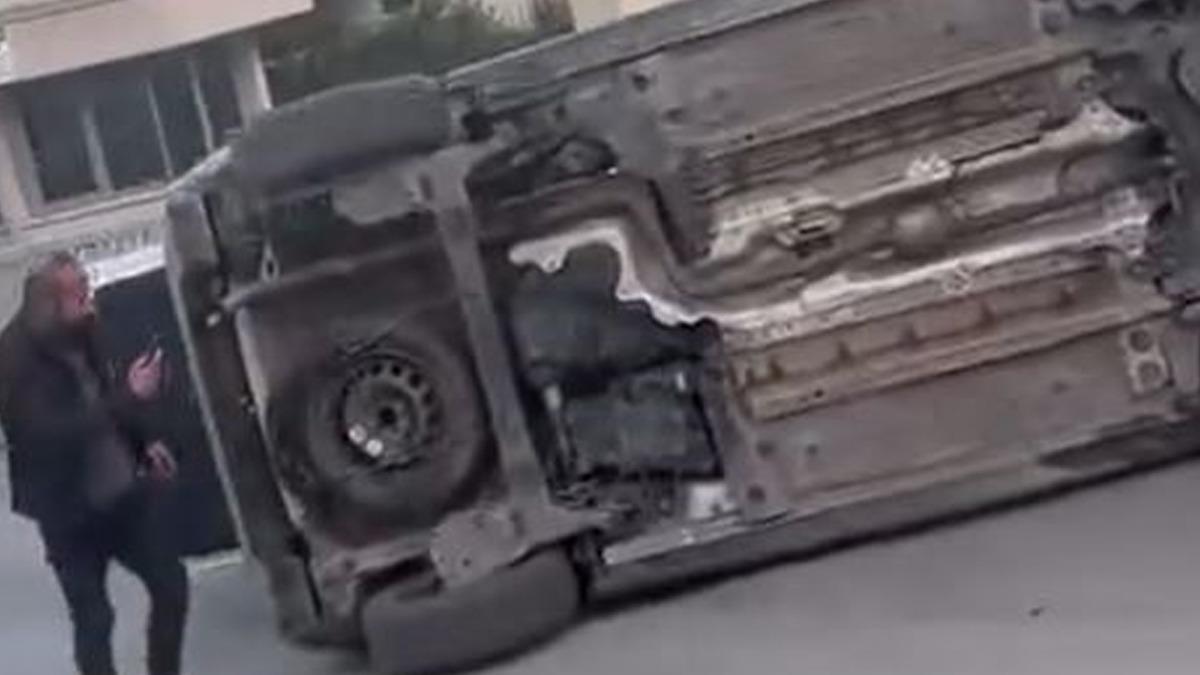 Esenyurt Osmangazi Mahallesi Uğur Mumcu Caddesi’nde dün akşam saatlerinde seyir halinde olan bir sürücüsü aynı yönde seyir halinde olan başka bir sürücü ile tartışmaya başladı. Küfür eden sürücü tartışma sırasında yan yoldan çıkan servis minibüsü fark etmeyerek çarptı. Çarpmanın etkisiyle takla atarak yolun diğer şeridine geçen araç yan yatarak sürüklendi. Sürücü kazayı hafif sıyrıklarla atlatırken kaza anı kameraya yansıdı.