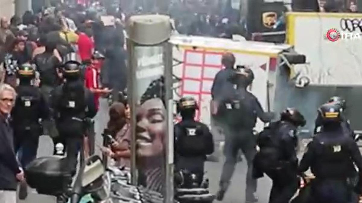 Göstericiler, bazı noktalarda çöp konteynerlerini ateşe verdi. Paris’te ise bir restorana saldıran göstericiler, restoran dışında ufak çaplı bir yangın çıkmasına neden oldu. Polis, göstericilere tazyikli su ve göz yaşartıcı gazla müdahale etti.