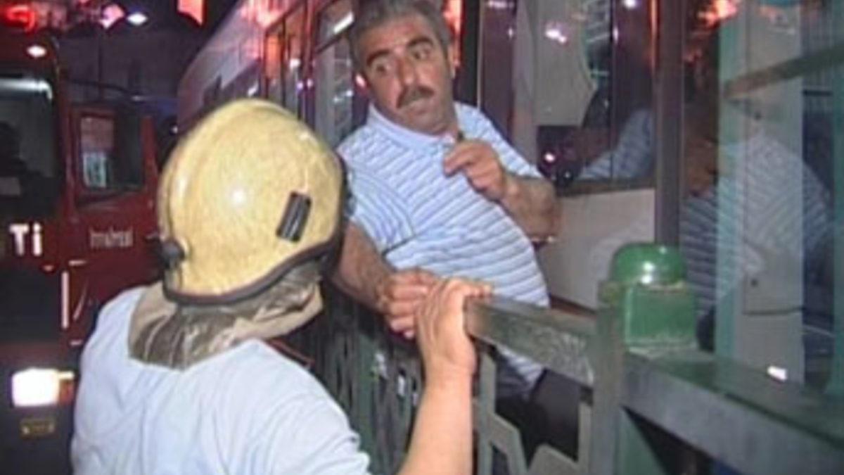 İtfaiye ekipleri, demir korkulukları keserek şahsı sıkıştığı yerden kurtardı.Olay, Galata Köprüsü üzerinde saat 21.00 sıralarında meydana geldi. Edinilen bilgiye göre, köprü üzerinden karşıya geçmeye isteyen Hüseyin Erdemoğlu (40), korkuluklardan atlayarak tramvay yoluna girdi. Zeytinburnu-Kabataş seferini yapan tramvayı son anda fark eden Erdemoğlu, korkuluklara iyice yaslanarak tramvaydan kurtulmaya çalıştı. Kilolu olduğu gözlenen Erdemoğlu, tramvayla korkulukların arasına sıkıştı. Yaklaşık 10 metre tramvay tarafından sürüklenen Erdemoğlu'nu yolcular fark etti. Vatman'ın uyarılması üzerine tramvay durduruldu.