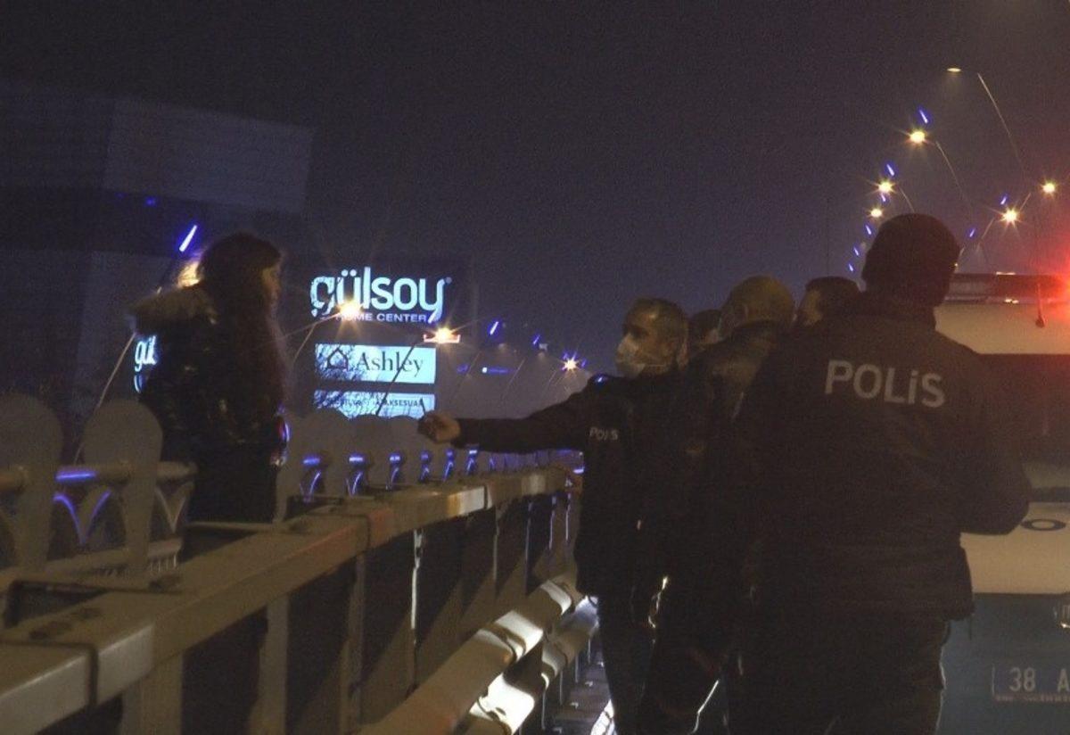 Kayseri’de psikolojik sorunları olduğu iddia edilen 22 yaşındaki genç kız, üst geçide çıkarak atlamak istedi. Ekipler ikna olmayan genç kızın bir anlık dalgınlığından faydalanarak yakalayıp bulunduğu tırabzanlardan indirdi.