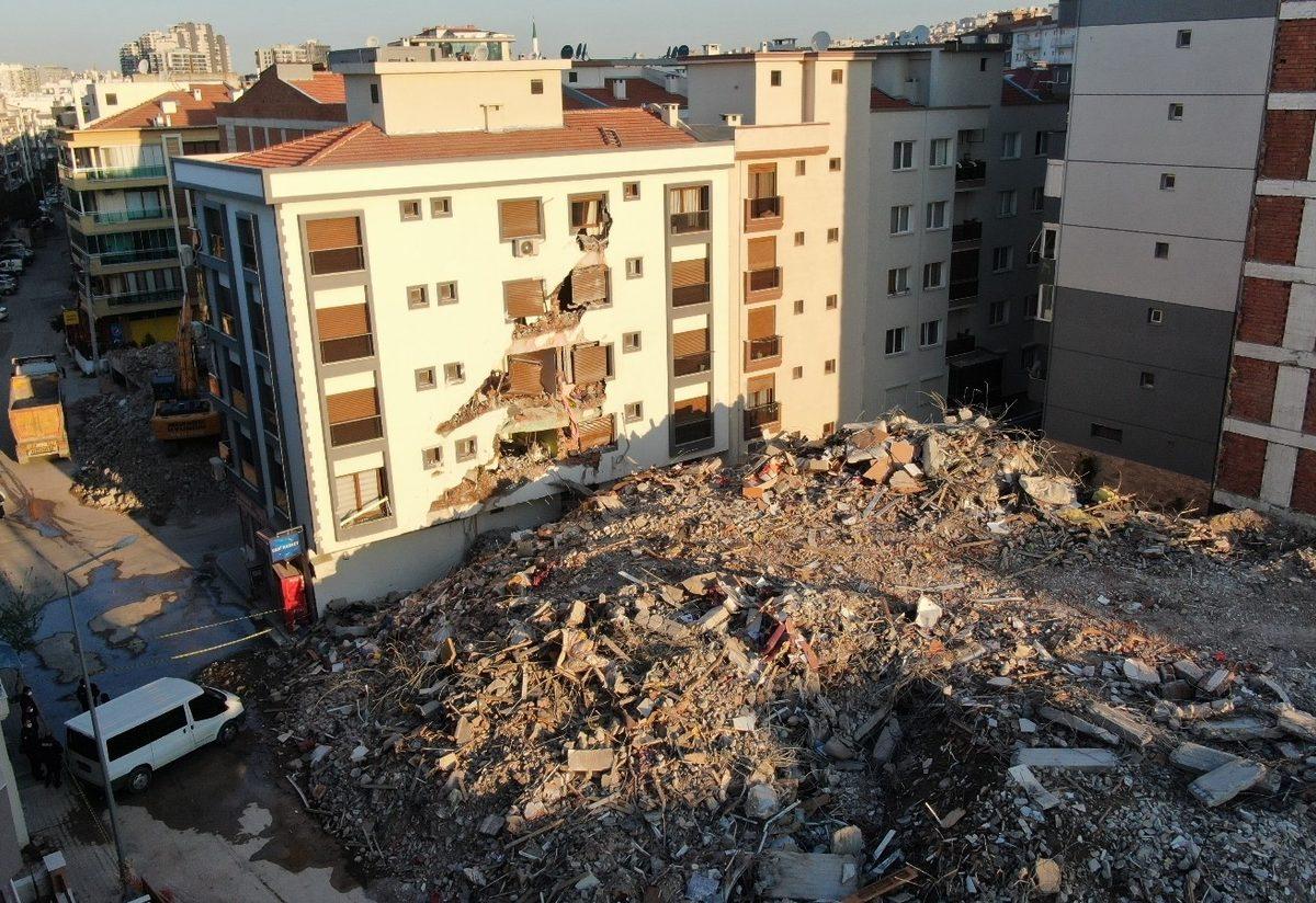 İzmir’de, 30 Ekim 2020’de meydana gelen depremde ağır hasar alan binaların yıkımına devam ediliyor. Karşıyaka ilçesi Şemikler Mahallesi’nde yıkımına geçen hafta başlanan Dostluk Sitesi’ndeki bir blokta çalışmalar dün de devam etmişti. Ekipler yıkım öncesi yan tarafta bulunan Nafi Cemal Apartman sakinlerinin tedbir amaçlı binayı boşaltmasını istemiş, yıkımına başlanılan 8 katlı bina çalışma esnasında büyük bir gürültüyle çökmüş ve yan tarafta bulunan binaya zarar vermişti. Yaşanan olayın ardından hasar gören apartmanın giriş kapısına zabıta tarafından mühür vurulmuştu.