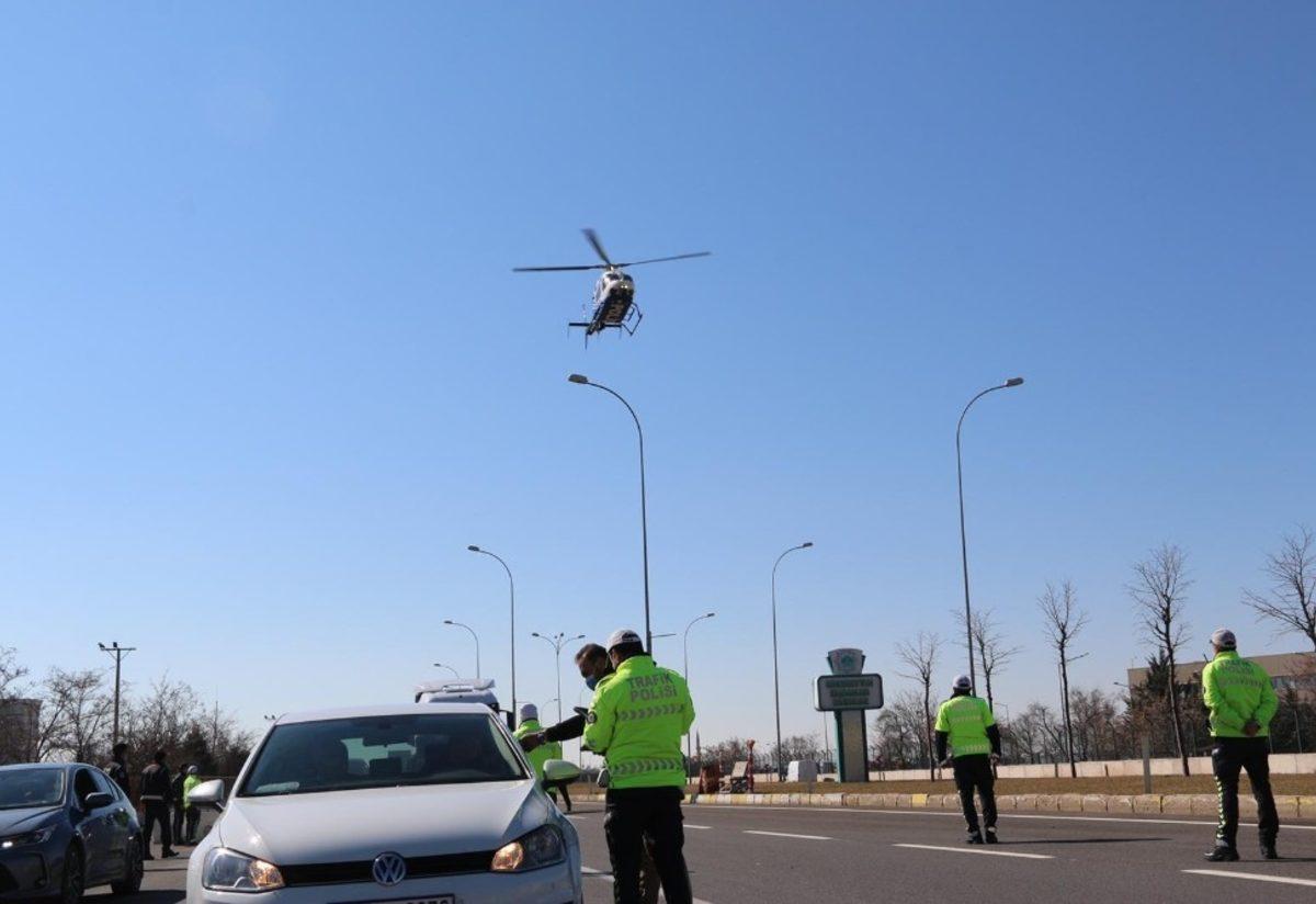 Aksaray’da İl Emniyet Müdürlüğü, helikopter destekli trafik uygulaması yaptı.