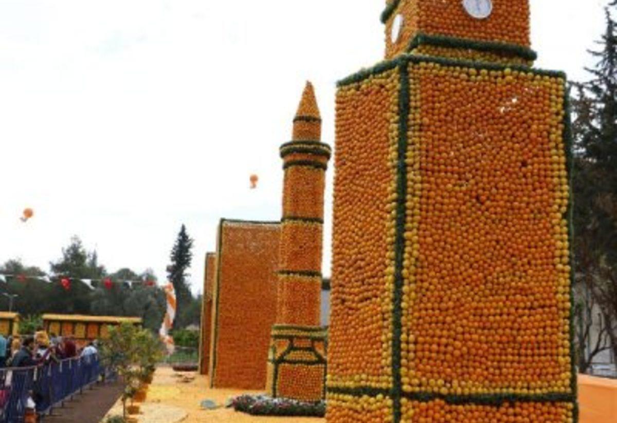 Antalya'da 50 ton narenciye kullanılarak heykeller ve kentin tarihi mimari eserlerinin yapıldığı 'Portakal Çiçeği Günleri' ziyarete açıldı.