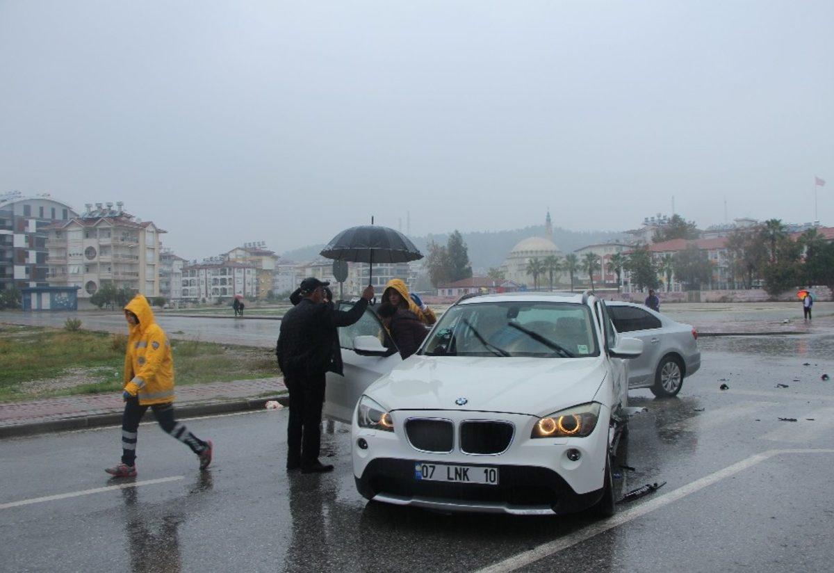 Antalya’da sık sık kazaların meydana geldiği kavşakta iki araç birbirinine girdi, bir kişi yaralandı.