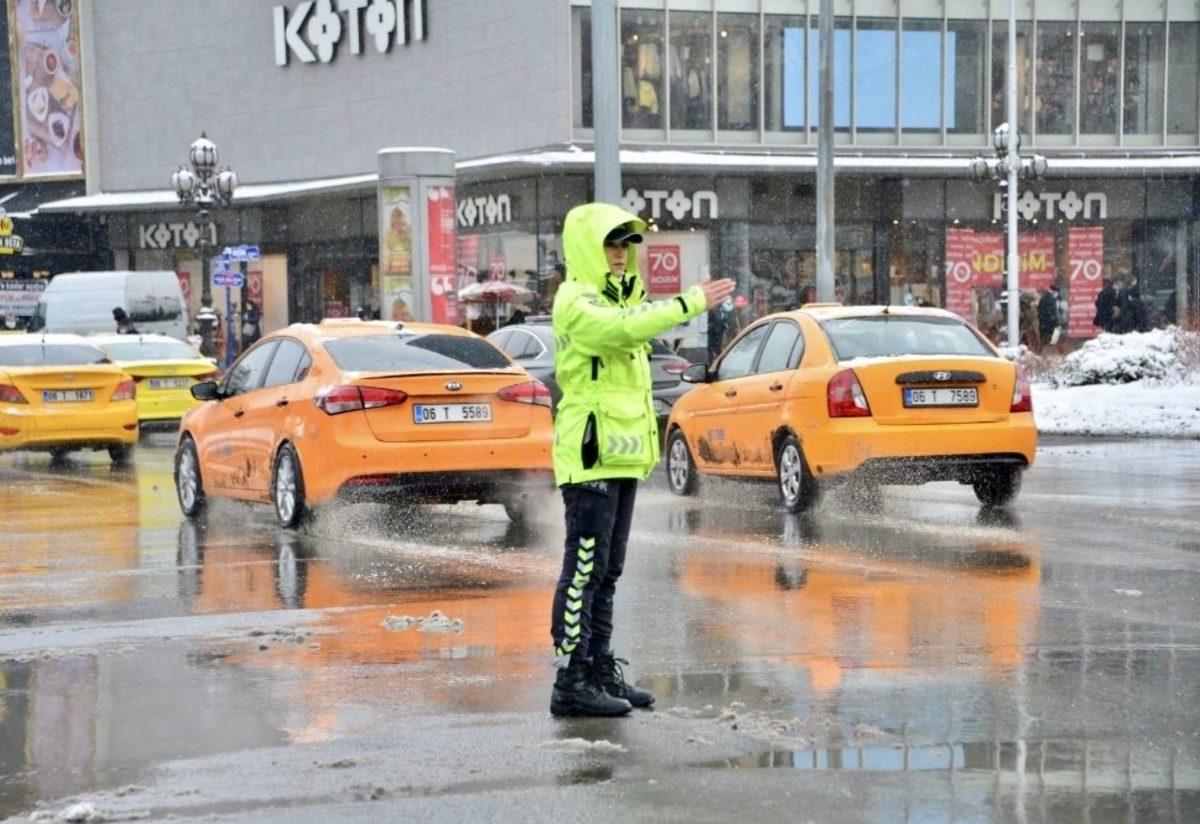 Başkent’te yolda kalanın da, aracı bozulanın da yardımına polis koştu