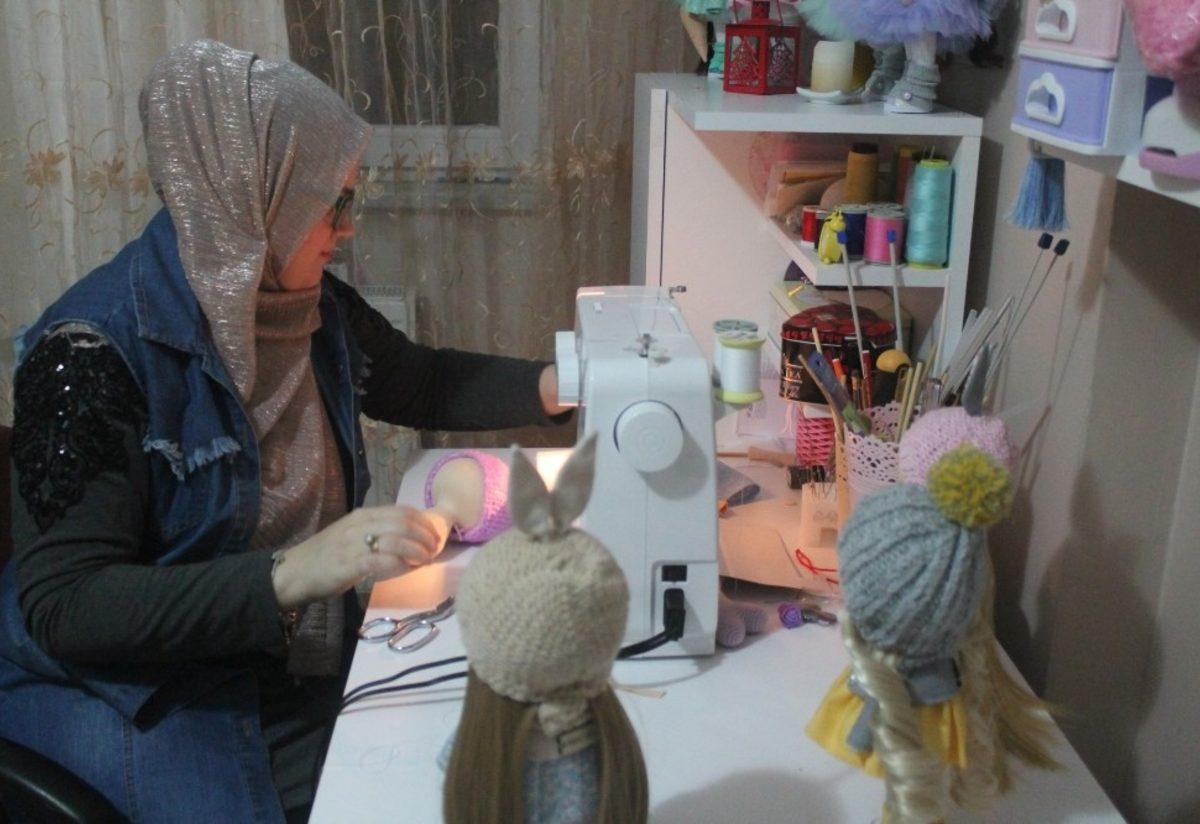 Bayburt’ta yaşayan Belaruslu gelin Yulia Sarıkan, can sıkıntısıyla yaptığı bez bebeleri şimdi dünyaya pazarlıyor.