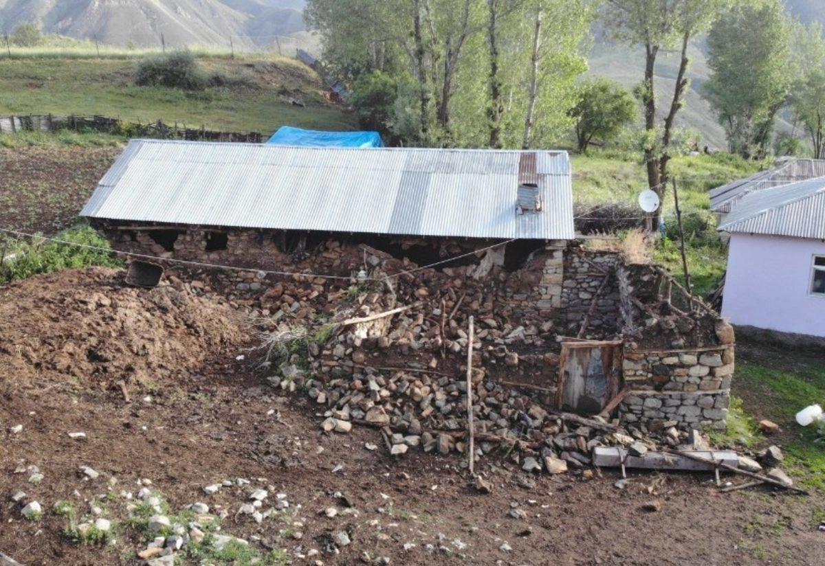 Jandarma karakolunun 2 güvelik kulesi çöken köyde, 10 ev hasar gördü.