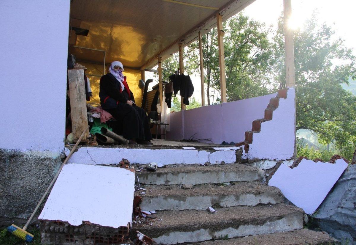 Jandarma karakolunun 2 güvelik kulesi çöken köyde, 10 ev hasar gördü.