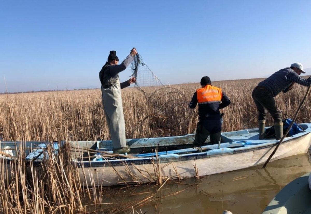 Ayrıca ele geçirilen malzemelerin toplandığı sırada pinterlerin içinde bulunan yaklaşık 500 kilogram canlı turna balığı ile 27 adet canlı kaplumbağa da Uluabat Gölü’ne iade edilerek doğal hayata kazandırıldı.