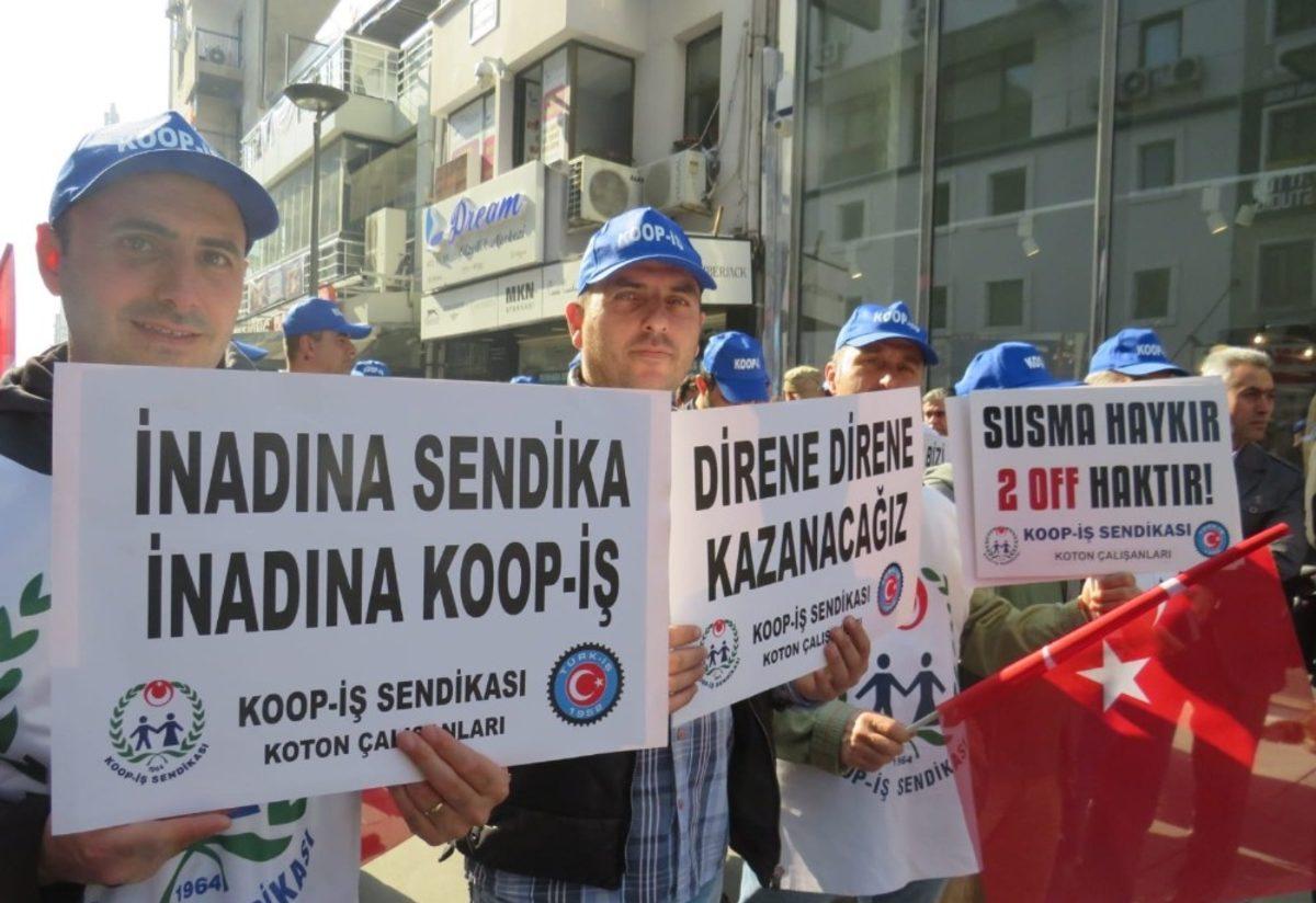 Giyim sektörünün önde gelen firmalarından olan ve Türkiye çapında onlarca mağazası bulunan Koton, Türkiye genelinde çok sayıda işçiyi işte çıkartırken, işten çıkartılan işçiler İzmir’deki mağaza önünde durumu protesto etti.