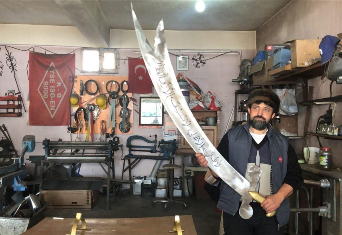 Bedir ALTUNOK/KARS, (DHA)- KARS'ın Selim ilçesinde demircilik yapan Latif Baytar, Hz. Ali'nin Zülfikar ismi verilen kılıcını yaptı. 4 kilo 820 gram ağırlığındaki kılıcın boyu 185 santim, eni 24 santim. Üzerinde 'Ali'den daha yiğit yoktur, Zülfikar'dan daha keskin kılıç yoktur' yazılı kılıç görenlerin ilgisini çekiyor.