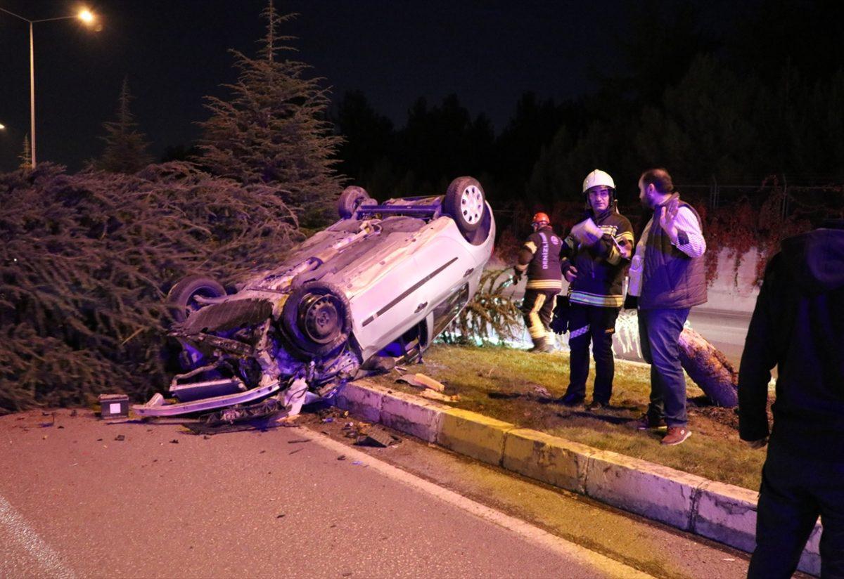 Otomobilin refüjdeki ağaca çarparak devrildiği kazayla ilgili ihbar üzerine olay yerine sağlık, itfaiye ve polis ekipleri sevk edildi.