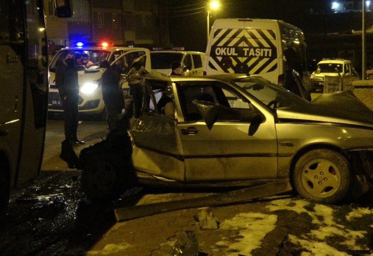 Sivas’ta ’dur’ ihtarına uymayarak polis ekiplerinden kaçan sürücü iki servis aracına çarptı. Kazada ortalık savaş alanına dönerken alkollü olduğu öğrenilen sürücüye 9 bin 500 lira para cezası kesildi.