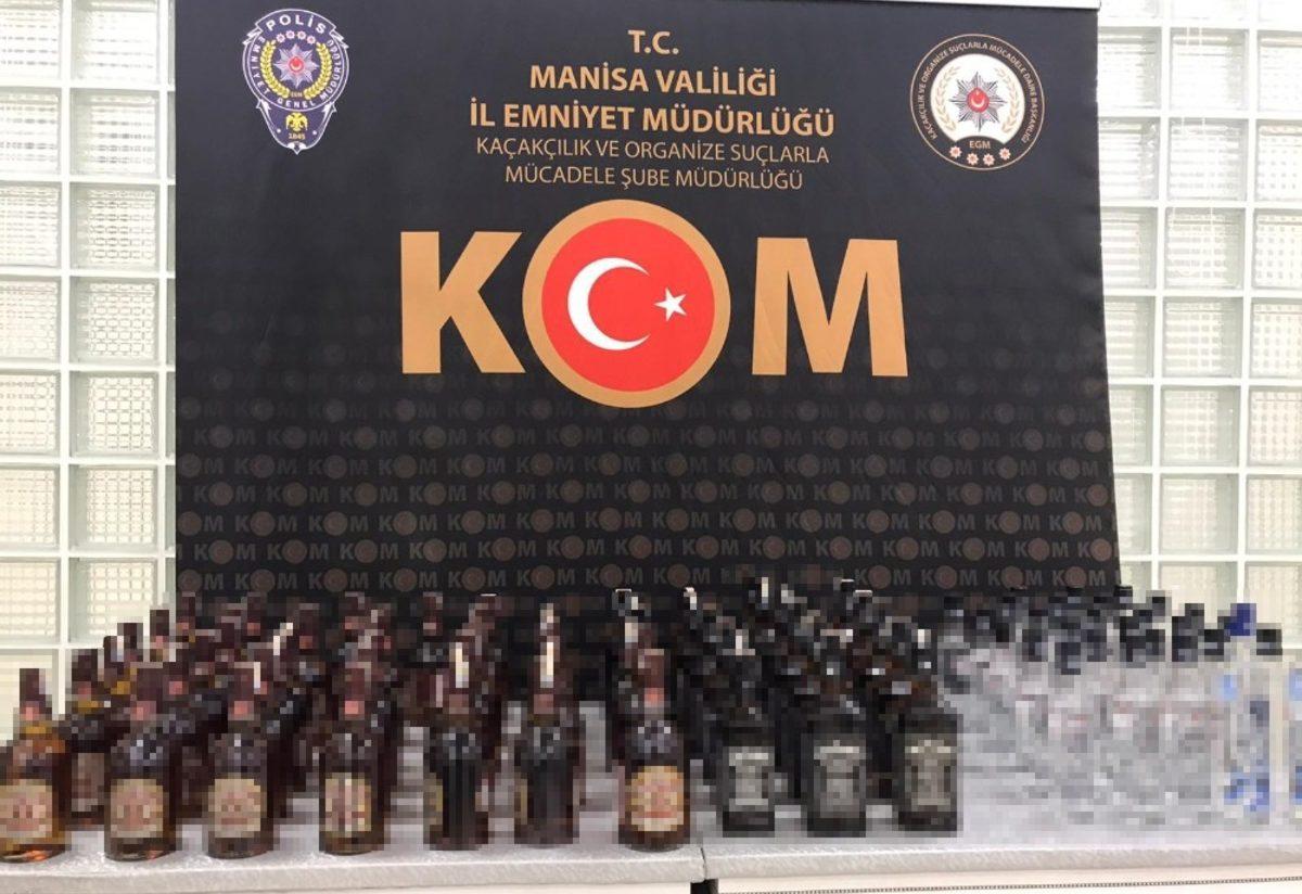 Manisa Kaçakçılık ve Organize Suçlarla Mücadele Şube Müdürlüğü görevlilerince Manisa merkezde kaçak içki satışı yapan şahıslara yönelik yapılan çalışma kapsamında İzmir’den gelen ve görevlilerce Manisa girişindeki uygulama noktasında durdurulan 35 HB 3637 plakalı araçta yapılan aramada viski, rakı ve votka cinsi içkilerden toplamda 84 adet sahte bandrollü kaçak içki ele geçirildi. Araçta bulunan K.M. ve F.D. isimli şahıslar hakkında 5607 sayılı Kaçakçılıkla Mücadele Kanunu kapsamında adli işlem yapılırken, olaya karışan araca da Kaçakçılık Kanununa istinaden el konuldu.