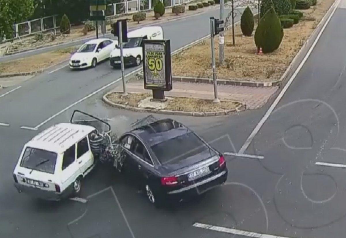 Emniyet Genel Müdürlüğü, 81 ilde MOBESE kameralarının kaydettiği trafik kazalarının görüntülerini paylaştı. Kastamonu’da Karayolları Kavşağında kaydedilen görüntüde, sürücüsü ışık ihlali yapan otomobil kontrolsüz bir şekilde kavşağa girince hızla gelen başka bir otomobille çarpışıyor. Kazada yolcu koltuğunda oturan kadının emniyet kemeri takılı olmadığı için dışarı fırladığı görülüyor. Kadın, yerde bir süre sürüklenirken, diğer otomobil ise trafik ışığına çarparak durabiliyor. Çarpmanın etkisiyle trafik ışığı, yerinden sökülerek kırmızı ışıkta bekleyen başka bir aracın üzerine devrildiği görülüyor.