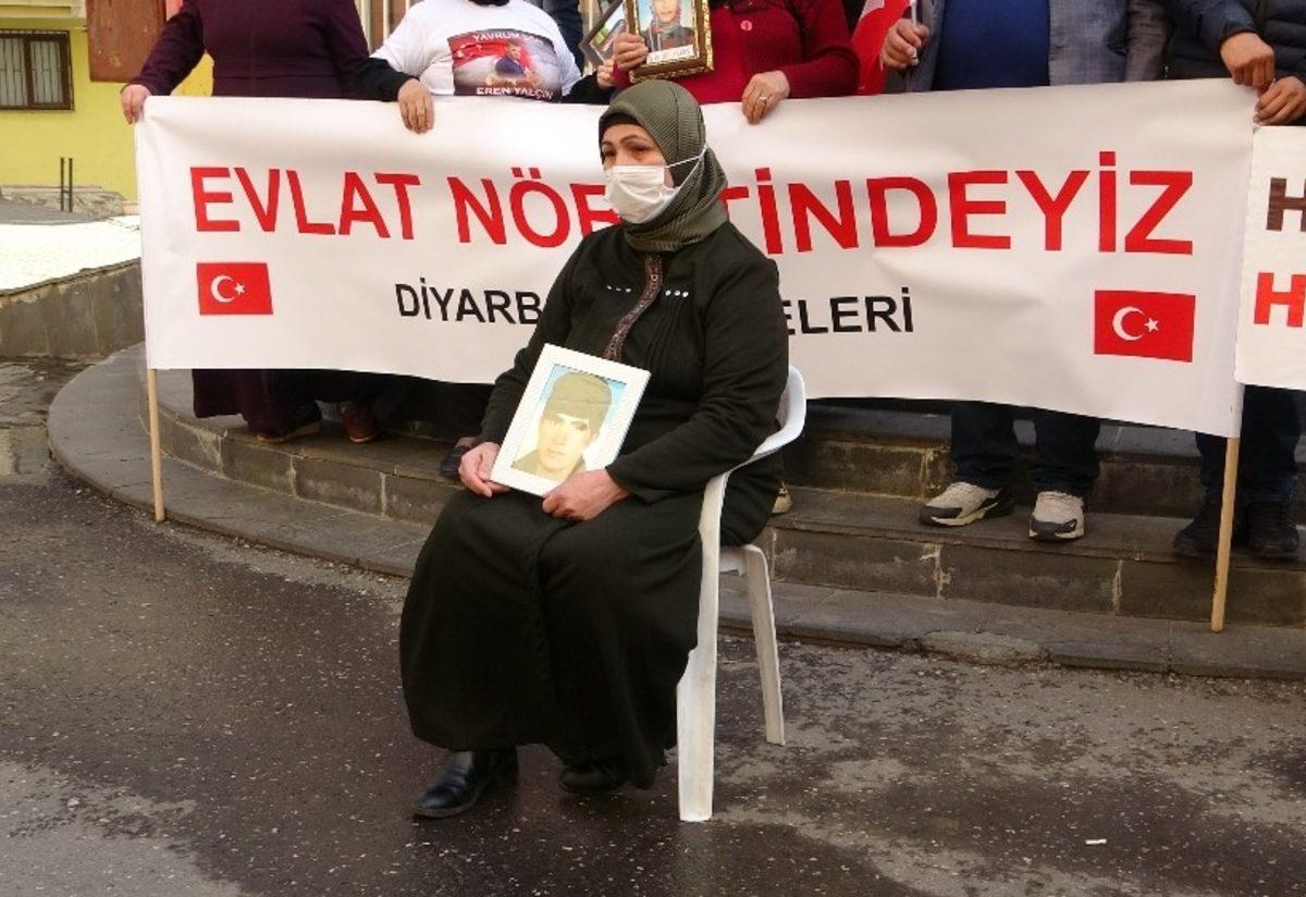 Çocuklarının terör örgütü PKK mensupları tarafından dağa kaçırıldığı iddiasıyla 3 Eylül 2019’da farklı kentlerden Diyarbakır’a gelerek HDP il binası önünde oturma eylemi başlatan ailelerin evlat nöbeti, tüm olumsuzluklara rağmen devam ediyor. Eylemin 569’uncu gününde 219’uncu aile nöbete katıldı. 2014 yılında İstanbul’da tekstil işiyle uğraşan ve 18 yaşında kandırılarak dağa götürülen Fırat Yüksel’in (25) annesi Nisbete Yüksel, Batman’ın Kozluk ilçesinden eyleme katılıp çocuğunu HDP’den istedi. Yüksel, "İstanbul’da aradım, karakollara gittik, fotoğraflarını verdim aradım bir haber gelmedi. Çalışıyordu, kafasını doldurdular, bir akşam gitti bir daha gelmedi. Bir defa aradı, yerini söylemedi, yasak olduğunu söyledi, bana ’Üzülme dua et’ dedi. Neden gelmiyorsun dedim, ’Beni bırakmıyorlar’ dedi. Evladımı HDP’den istiyorum, yeter dayanamıyorum, çocuğumu istiyorum. Oğlum neredeysen gel, annen hasta, kederinden ölüyorum" dedi.