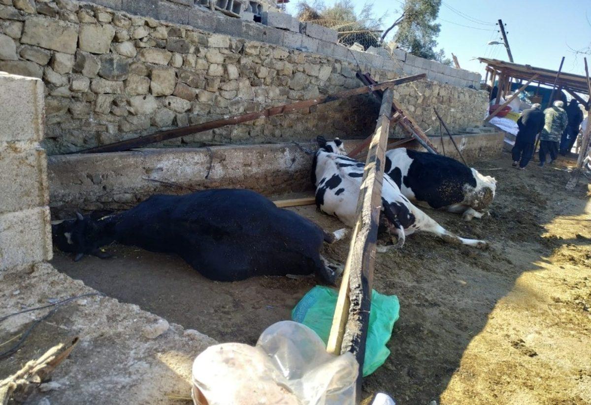 Adana’nın Kozan ilçesinde dün akşam etkili olan fırtınada, ahırın çatısı çökünce 3 inek telef oldu.