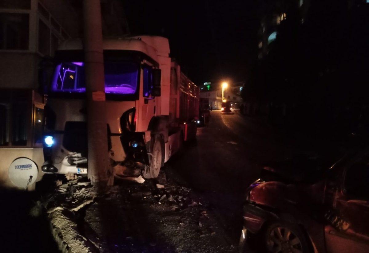 Zonguldak’ta freni patlayan tır elektrik direğine ve park hallindeki araca çarparak durabildi. Kazada bir araç hurdaya dönerken şans eseri yaralanan olmadı.