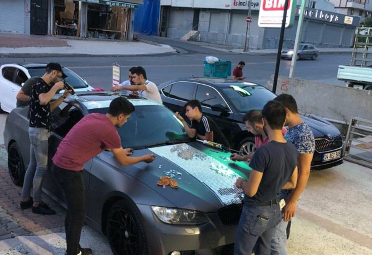 İstanbul Dudullu’da bir ayna firmasında çalışan 15 genç, 100 bin parça aynayı lüks arabanın üstüne yapıştırdı. Yapımı 10 günde tamamlanan ve vatandaşların ilgi odağı haline gelen araç, trafiğe çıkış için ruhsat almayı bekliyor.