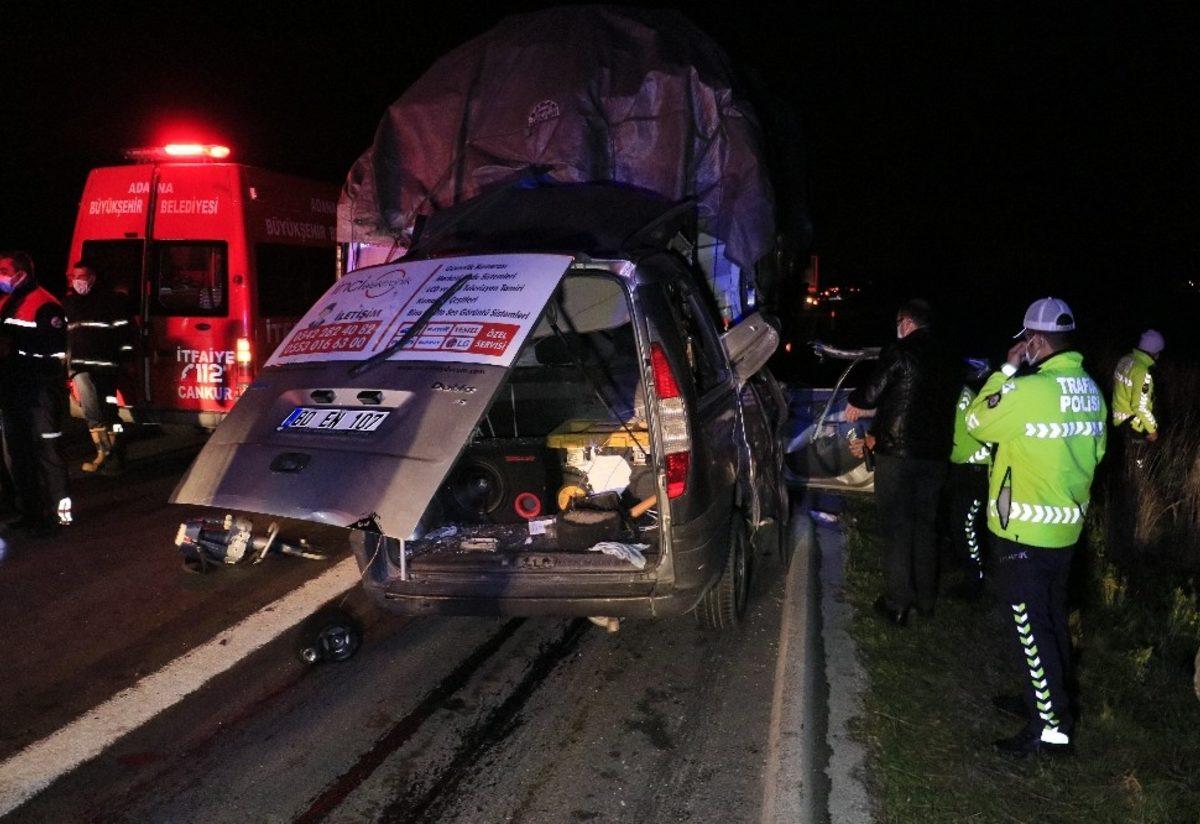 Adana’nın Ceyhan ilçesine bağlı TAG otoyolunda hafif ticari araç tıra arkadan çarptı.