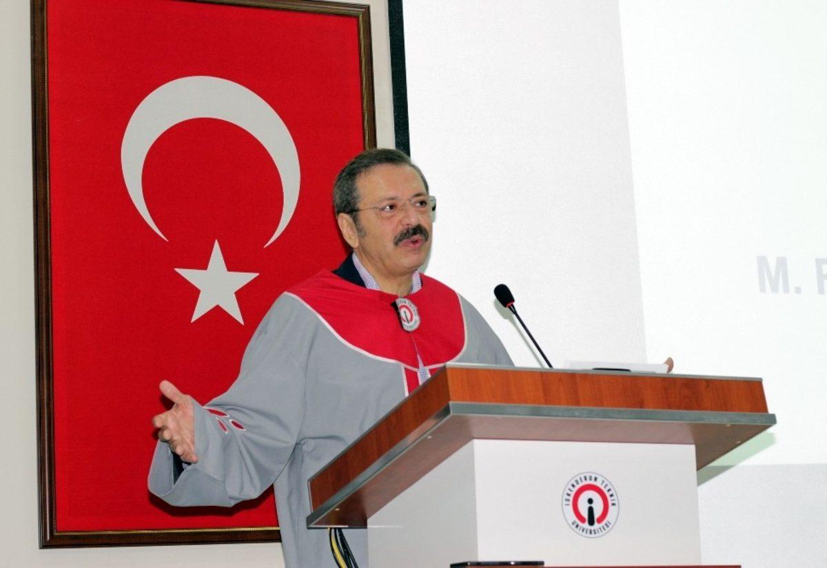 Üniversitenin kampüsünde düzenlenen törende konuşan TOBB Başkanı Hisarcıklıoğlu, "Kendi geleceğimiz ve ülkemizin geleceği için girişimciliği arttırmamız gerekmektedir" dedi. Herkesin zengin olmak istediğini belirten Hisarcıklıoğlu, ülke olarak memleket olarak vatandaş olarak girişimciliği arttırmamız gerektiğini ifade etti.