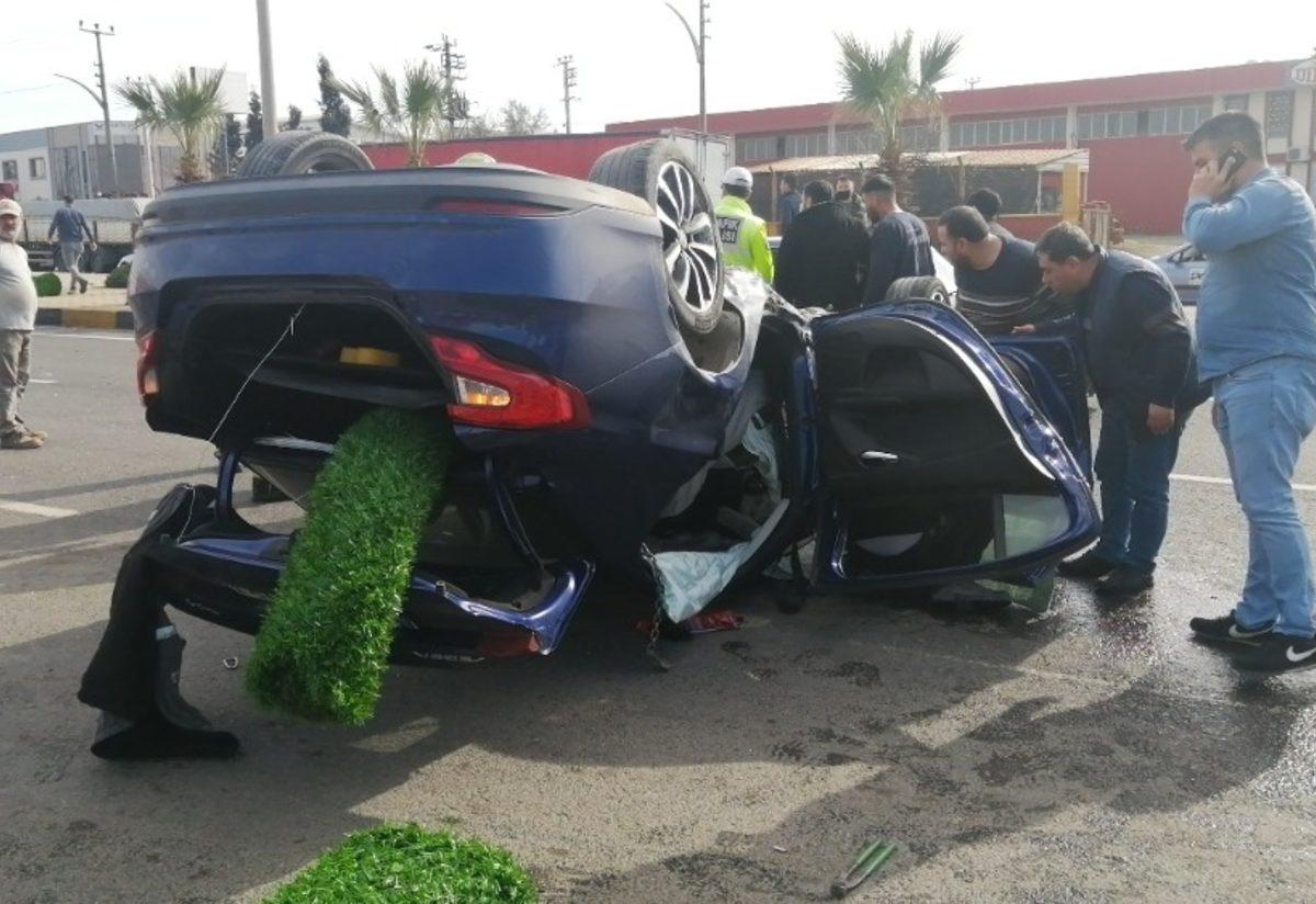 Manisa’nın Turgutlu ilçesinde E-96 karayolu üzerinde İzmir istikametine seyir halindeki Gökhan Ö. (31) yönetimindeki 45 ABM 051 plakalı otomobil, 7 Eylül Parkı kavşağından dönmeye çalışan Nevzat G. yönetimindeki 45 ST 020 plakalı otomobille çarpıştı. Çarpmanın etkisiyle Gökhan Ö. yönetimindeki otomobil yoldan çıkıp, refüje çarptıktan sonra takla atıp devrildi.