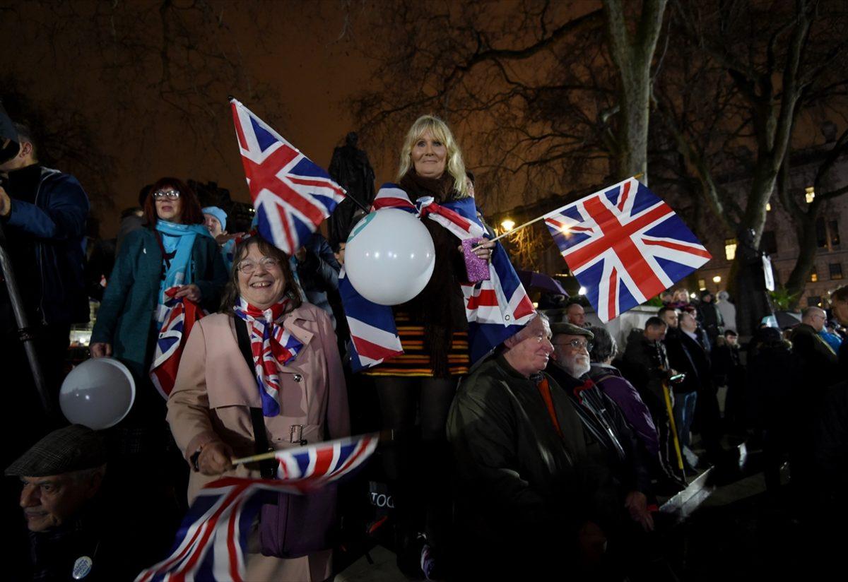 Brexit yanlıları, saatler 23.00'ü gösterdiğinde hep beraber sevinç gösterilerinde bulundu.