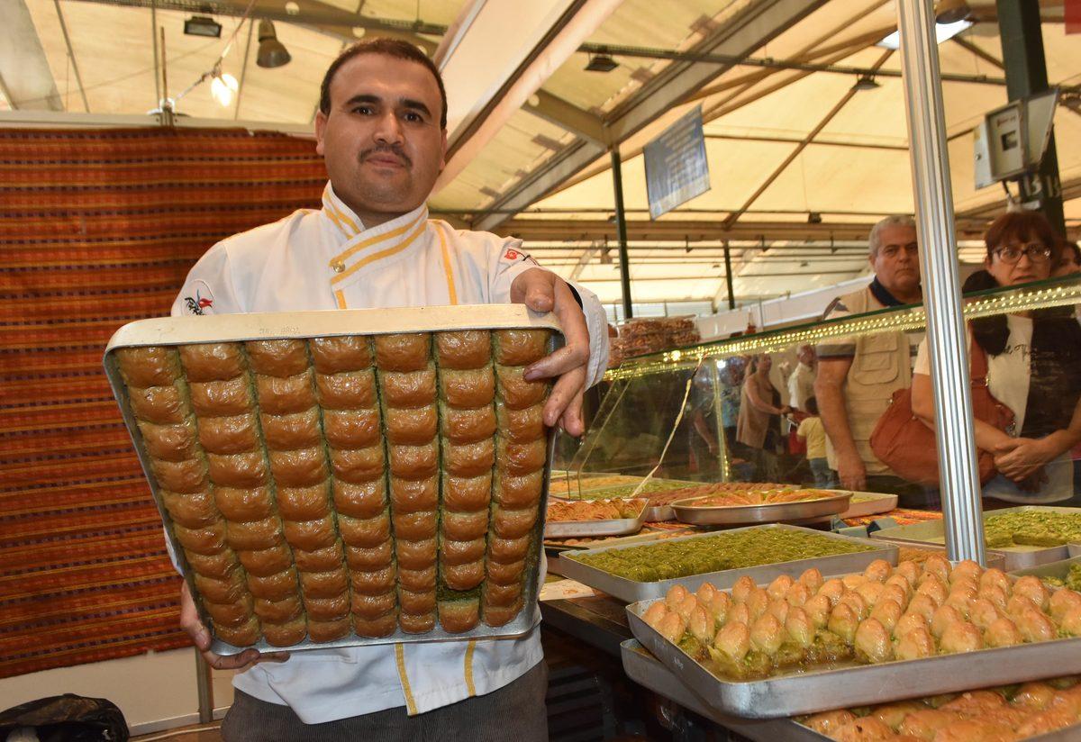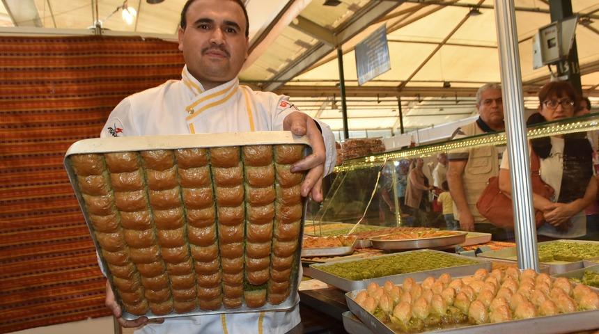 Gaziantep'te çok fazla baklava çeşidi olduğunu söyleyen baklava ustası Ali Polat, "Yıllardır Gaziantep'te bu işi yapıyorum. Şimdi de İzmir'i tatlandırmaya bin 100 kilometre mesafeden geldik. Bugün de standımızda şöbiyet, yaprak şöbiyet, yaprakzade, dilber dudağı, prens, çikolatalı baklava, midye baklava gibi birçok baklava çeşidini sergiliyoruz. Antep baklavasının özelliği ters çevrildiğinde dökülmemesidir. Her kim bu tepsileri çevirirse çevirsin baklavalarımız dökülmez. Bu durum İzmirli vatandaşlar tarafından büyük hayretle karşılandı. En çok dikkat çeken bu oldu" diye konuştu.