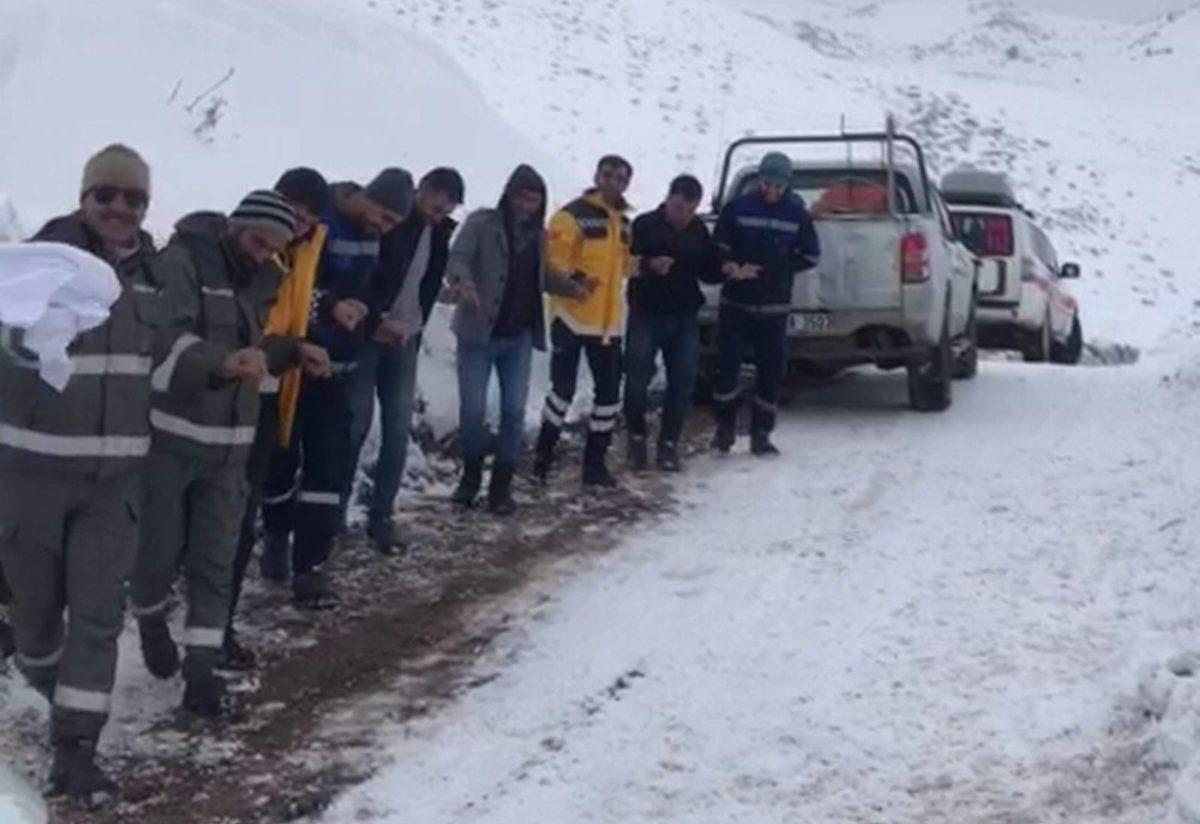 Siirt’in Pervari ilçesinde dün geceden beri etkili olan kar yağışı nedeniyle ulaşıma kapanan yolun açılmasını bekleyen 112 acil sağlık ve DEDAŞ ekipleri, halay çekerek yolun açılmasını bekledi.