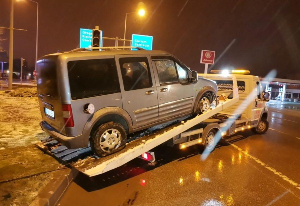 Çorum’un Sungurlu ilçesinde etkili olan kar yağışı kazaları da beraberinde getirdi.