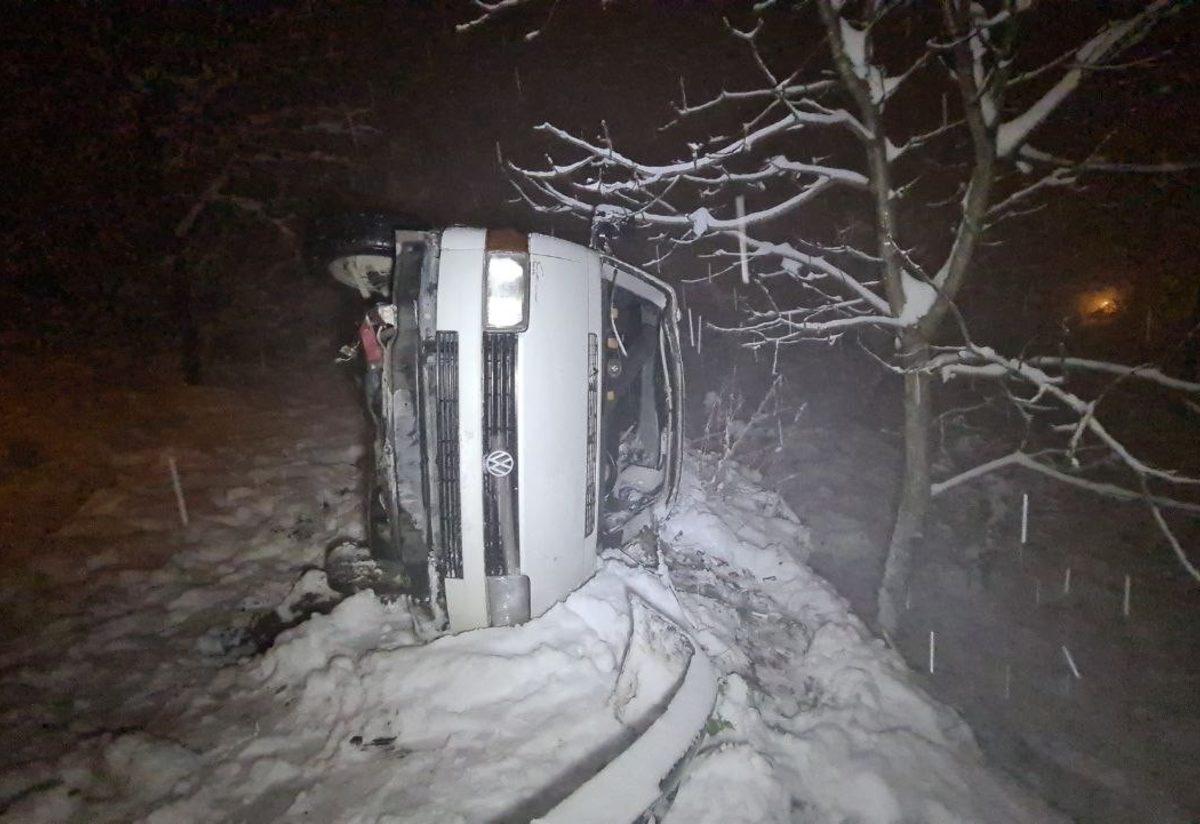 Karabük’ün Safranbolu ilçesinde kar nedeniyle kayganlaşan yolda kontrolden çıkıp bahçeye uçan minibüsteki 4 genç yaralandı.