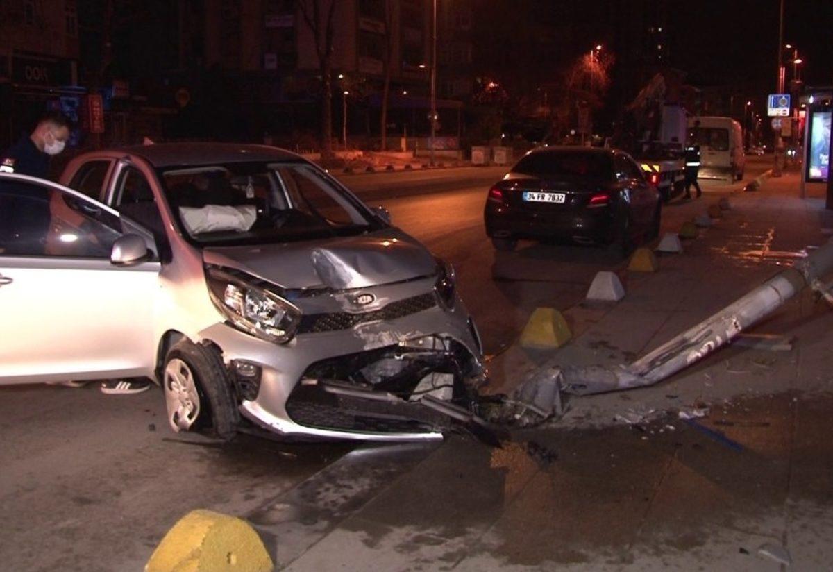 Kadıköy’de aydınlatma direğine çarpan araç hurdaya dönerken kazada bir kişi yaralandı. Araç sürücüsü kız arkadaşının yaralandığını görünce gözyaşlarına hakim olamadı.