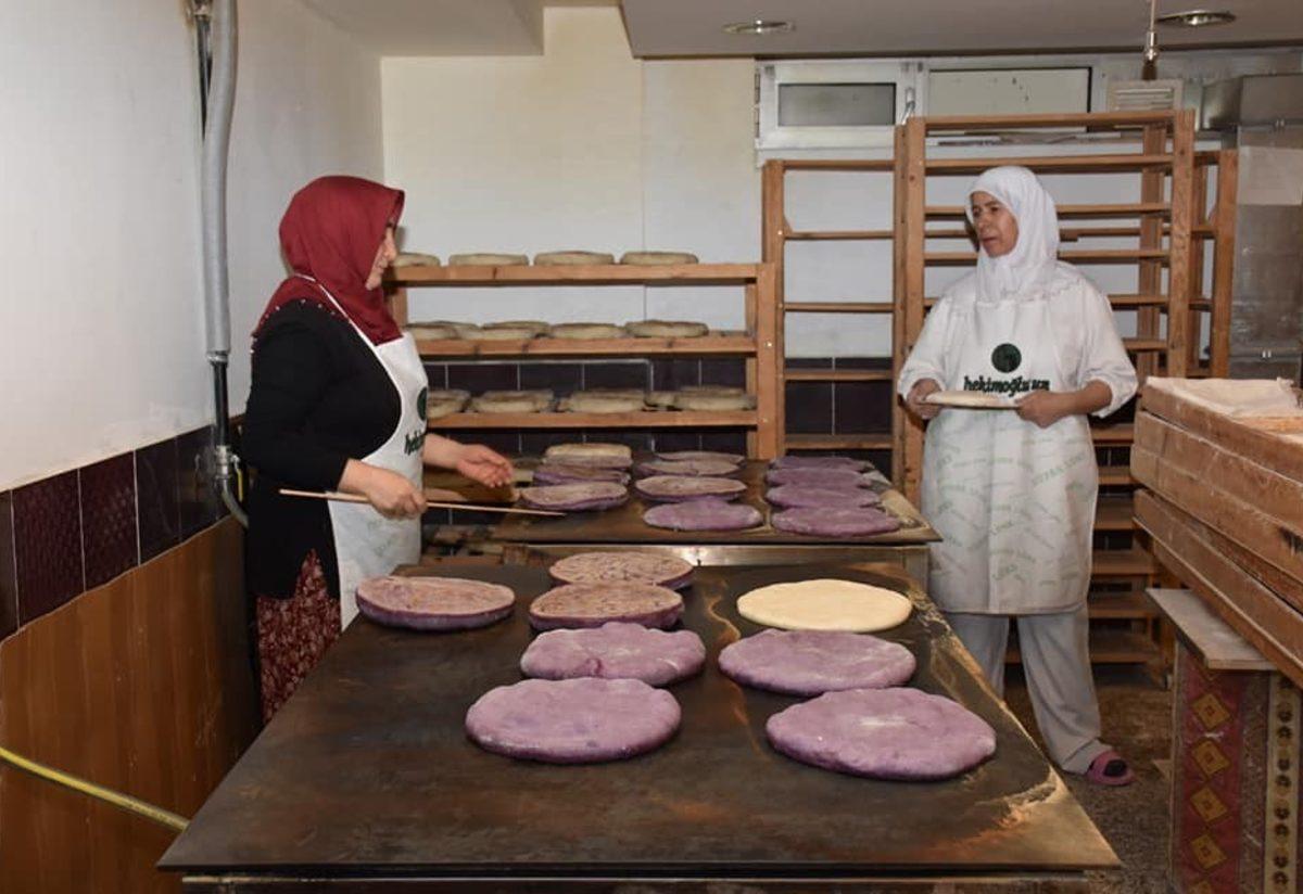 Kaplıcaları, doğası, sucuğu, suyu, maden suyu ve bazlaması ile ünlü olan Kızılcahamam’da mor bazlama üretimi de başladı.
