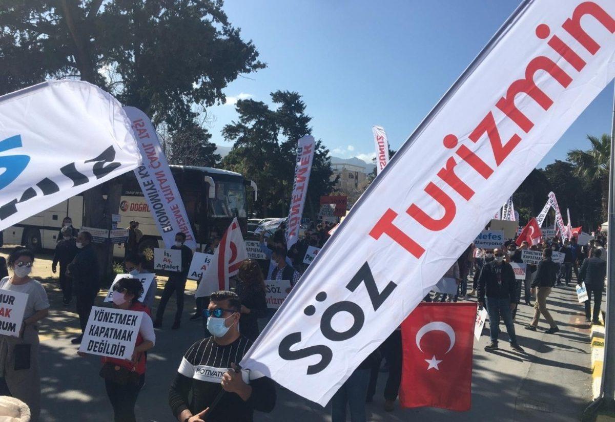 Dünyayı etkisi altına korona virüs salgını nedeniyle çeşitli ülkelerde çok sayıda iş alanında kapanmalar olurken, Kuzey Kıbrıs Türk Cumhuriyeti’nde de (KKTC) turizm sektörü salgın nedeniyle büyük zarar gördü. KKTC’de 2 bin turizm emekçisi, yaklaşık 9 aydır evine ekmek götüremediği ve hükümetten gerekli maddi desteği alamadıkları için turizm kenti Girne’de sokaklara döküldü.