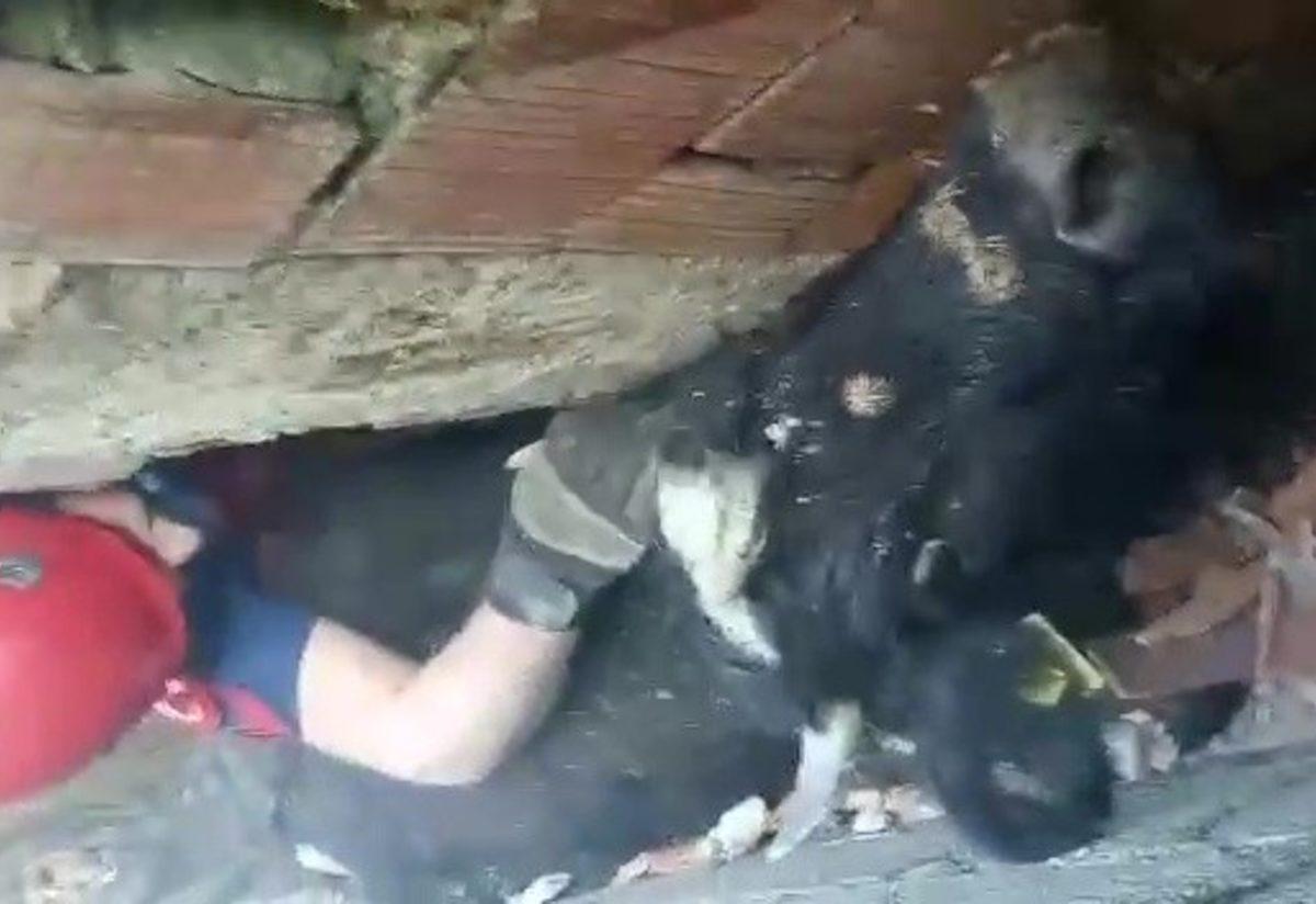 Köpeklerden kaçan inek iki duvar arasında sıkıştı