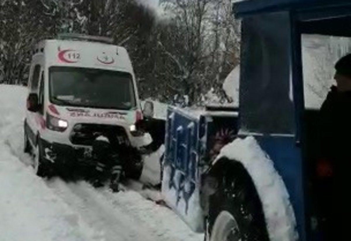 Mahalleli, gün içinde kara saplanan 4 ambulansın yardımına koştu