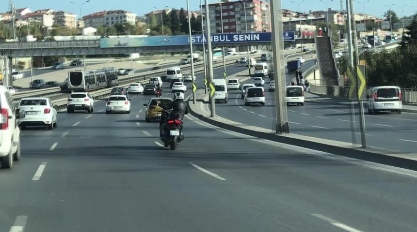 Alper KORKMAZ / İSTANBUL , (DHA) D -100 Karayolu'nda motosikletiyle giden bir kişi dans edip, makas atarak, hem kendini hem de trafiktekilerin canını tehlikeye attı. O anlar kameralara yansıdı.