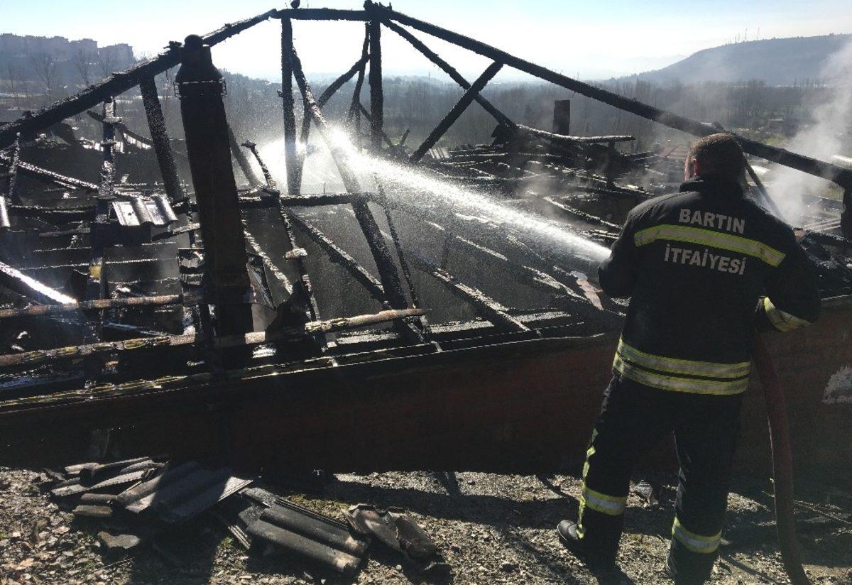 Bartın’da bir evin mutfak bölümünde başlayan yangın kısa sürede büyüdü. Tamamı yanan ev kullanılamaz hale geldi.