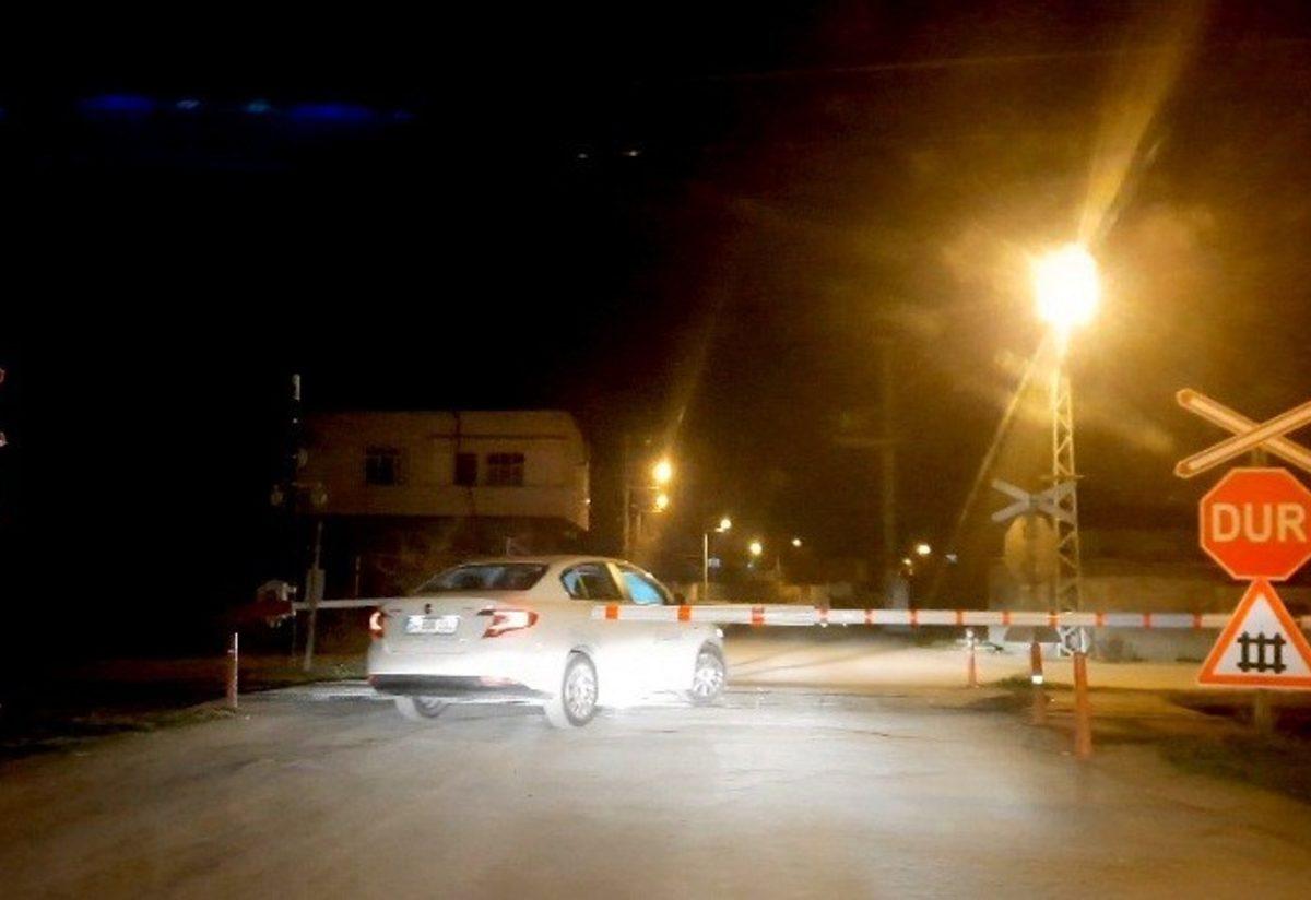 Görüntülerde bir sürücünün aracından inerek tren yoluna bakıp tren gelip gelmediğini kontrol etmesinin ardından elleriyle bariyerleri kaldırmaya çalıştığı görüldü.