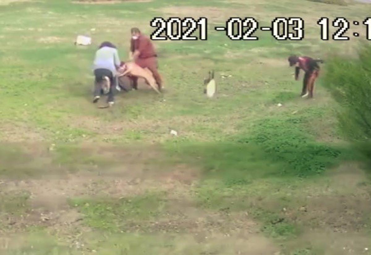 Olay sırasında köpekleri pitbullun saldırısına uğrayan Aleyna ve Saygın korkudan ne yapacaklarını şaşırırken, ellerine geçirdikleri malzemeleri atarak ayırmaya çalıştılar.
