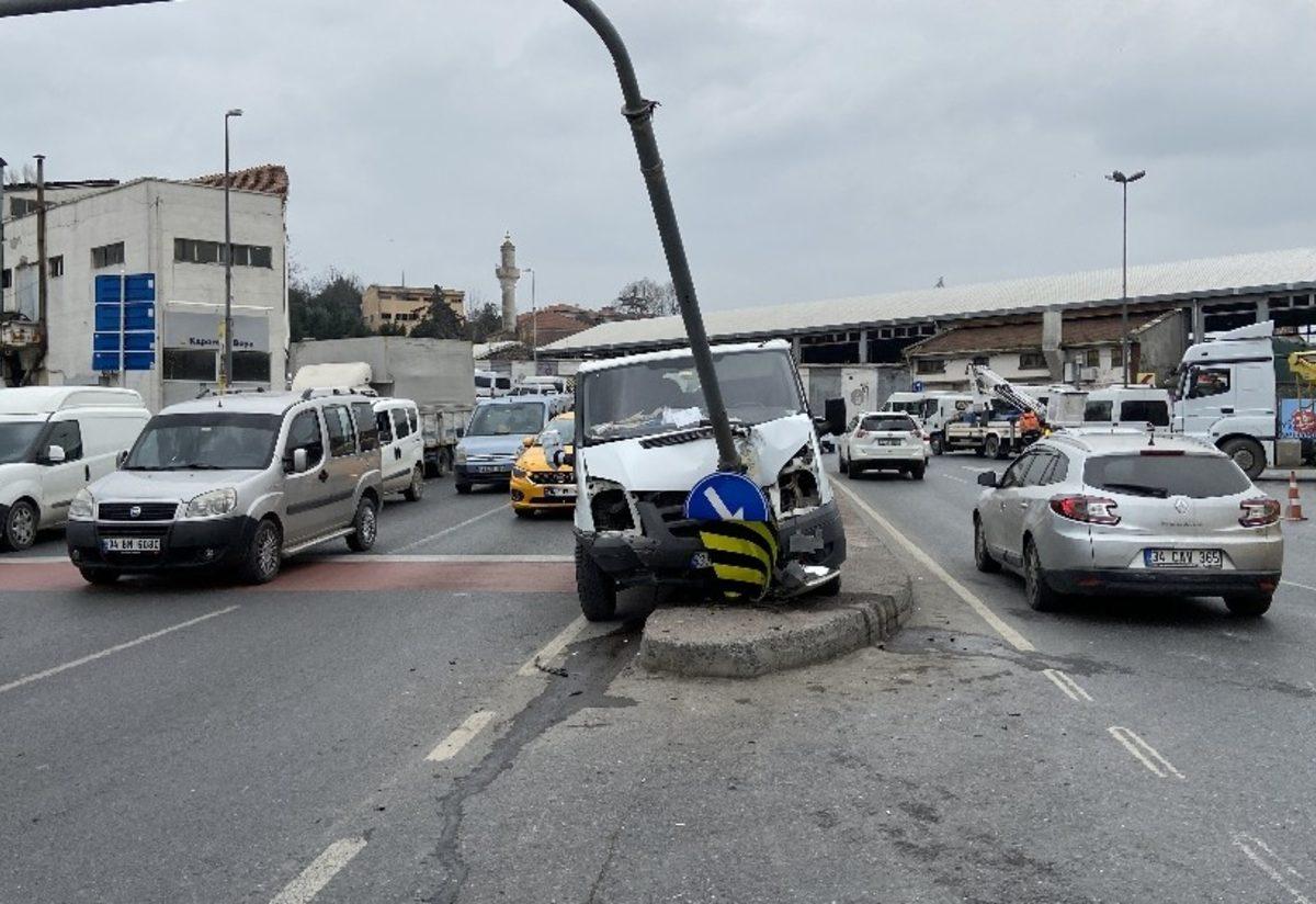 Beyoğlu’nda yokuş aşağıya indiği sırada frenleri patlayan kapalı kasa minibüsü, önce önündeki taksiye ardından da trafik ışıklarına çarparak durabildi. Kazada şans ederi yaralanan olmazken, trafik ışığı yan yattı.