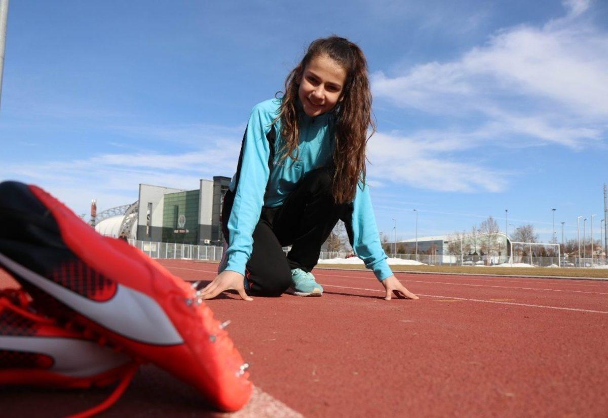 Kayseri’de, spor ayakkabısı ile koşarken hocasının keşfedip çivili koşu ayakkabısı hediye ettiği 12 yaşında Aleyna Günbay, katıldığı ilk yarışmada Türkiye 1‘incisi olarak altın madalya kazandı.
