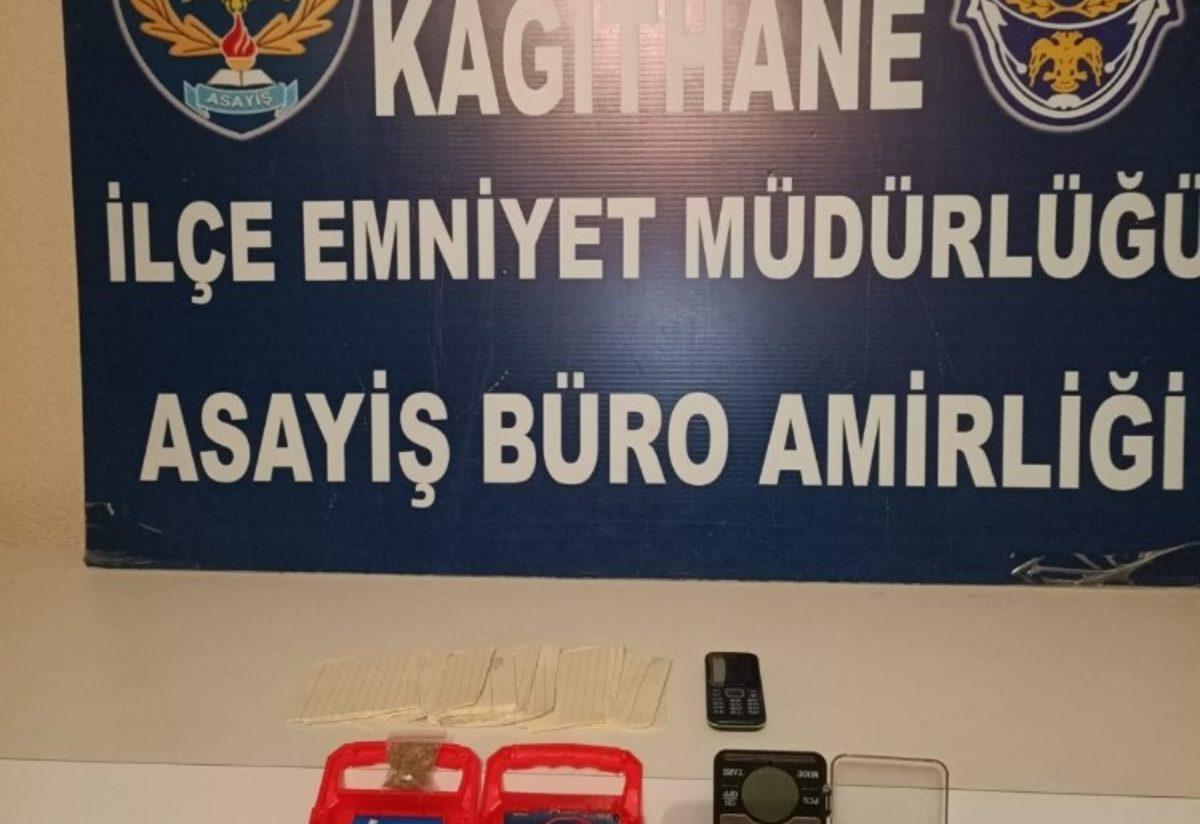 Bunun üzerine kargo evrakından bilgilerden şahısların kimliğini tespit eden Kağıthane İlçe Emniyet Müdürlüğü Asayiş Büro Amirliği ekipleri, “kullanmak için uyuşturucu madde satın almak ve bulundurmak” suçundan emniyette 3 adet kaydı olan Selim K. ve 3 adet “kasten yaralama”, 5 adet “uyuşturucu kullanmak”, 10 adet “evden hırsızlık” ve “ateşli silahlar kanununa muhalefet” suçundan emniyette kaydı bulunan Emre Ç.’nin evine baskın düzenledi. Baskında Emre Ç.’nin evinde arama yapan polis, beyaz kağıda sarılı vaziyette 2 parça halinde marijuana diye tabir edilen uyuşturucu madde, madde fişeklemede kullanılan çok sayıda çizgili kağıt parçası, bir adet hassas terazi, madde satışında kullanıldığı düşünülen 1 adet cep telefonu, 102 adet tabanca fişeği ele geçirildi.
