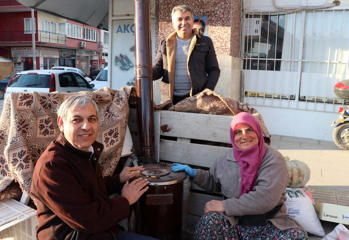 Pazarcı İsmail Çürük (48), "Son 2-3 yıldır çok soğuk oluyor. Bu yüzden tezgahlarımızda soba kuruyoruz ısınmak için" diye konuştu.