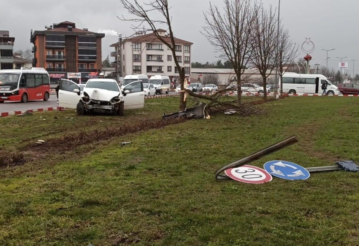 Kaza, akşam saatlerinde Bahçeşehir bağlantı yolunda meydana geldi. Edinilen bilgiye göre, Bahçeşehir bölgesinden Düzce şehir merkezine seyir halinde Turgay C.’nin kullandığı 34 HE 1040 plakalı Fiat marka otomobil, sürücüsünün yağmur sebebiyle kayganlaşan yolda direksiyon hakimiyetini kaybetmesi sonucu refüje çıkarak 150 metre sürüklendi. Önce trafik işaretine çarparak deviren otomobil, daha sonra refüjdeki ağaca çarparak durabildi. Kazada sürücü Turgay C. yaralandı. Yaralı, olay yerine gelen sağlık ekiplerinin müdahalesinin ardından Atatürk Devlet Hastanesi’ne kaldırdı. Otomobilin çarptığı ağaç ise gövdesinden kırılırken, kazayla ilgili inceleme başlatıldı.